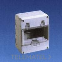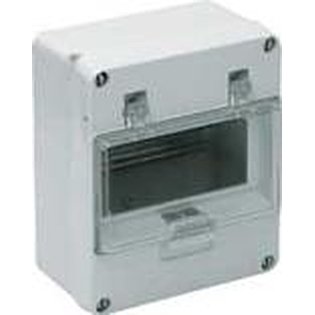 Caja estanca de distribución de 6 elementos.IP54. IK07. Color blanco y puerta fumé. Dimensiones exteriores 145 x 165 x 84 mm. Laterales lisos. Precintable. Cierre con tornillos 1/4 de vuelta.